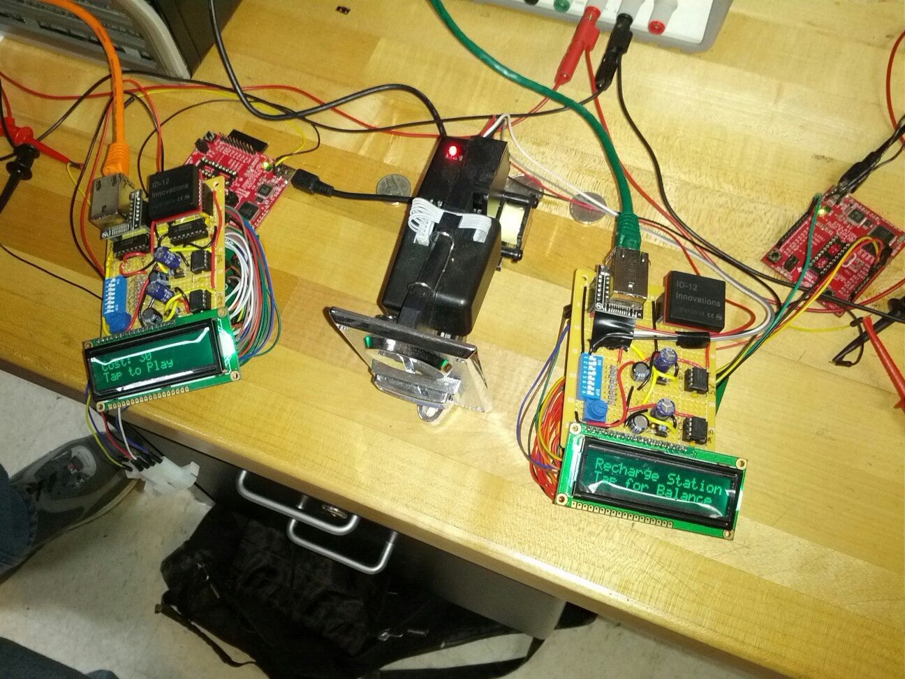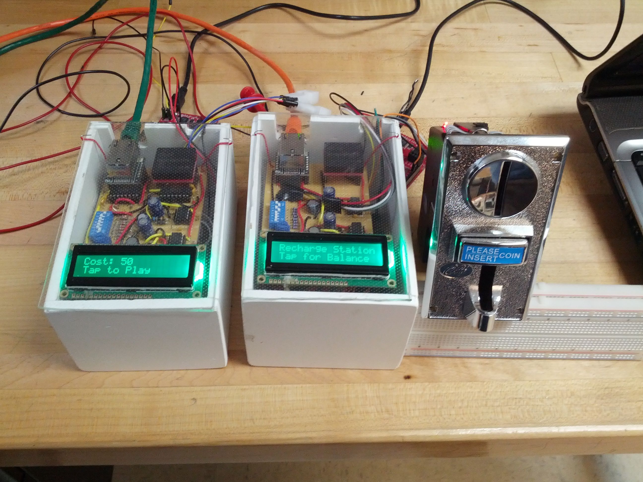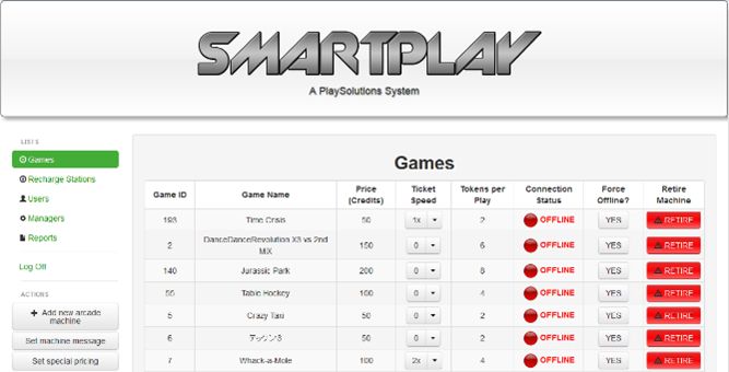 The SmartPlay system was the college team project for my capstone course. It is a computer system designed as a data collection, payment and reward solution in an arcade environment. It consisted of modules which were retrofitted into an arcade machine, adding payment and reward collection functionality with the use of an RFID card. The modules were connected to a custom network via Ethernet to transmit the transaction data to the central server. This server authorized payments and managed machine configurations though an admin panel. The admin panel allowed admins to create user accounts and edit machine configurations, as well as automatically generating reports on machine profits and other usage statistics.